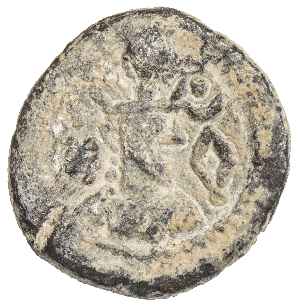 Ancient - Near East,SASANIAN KINGDOM: Yazdigerd I, 399-420, lead pashiz (2.59g), G-—, standard bust right, triangle to the right, and pellet within the crescent attached to the right side of the crown , standard reverse, nice Fine to VF, R.