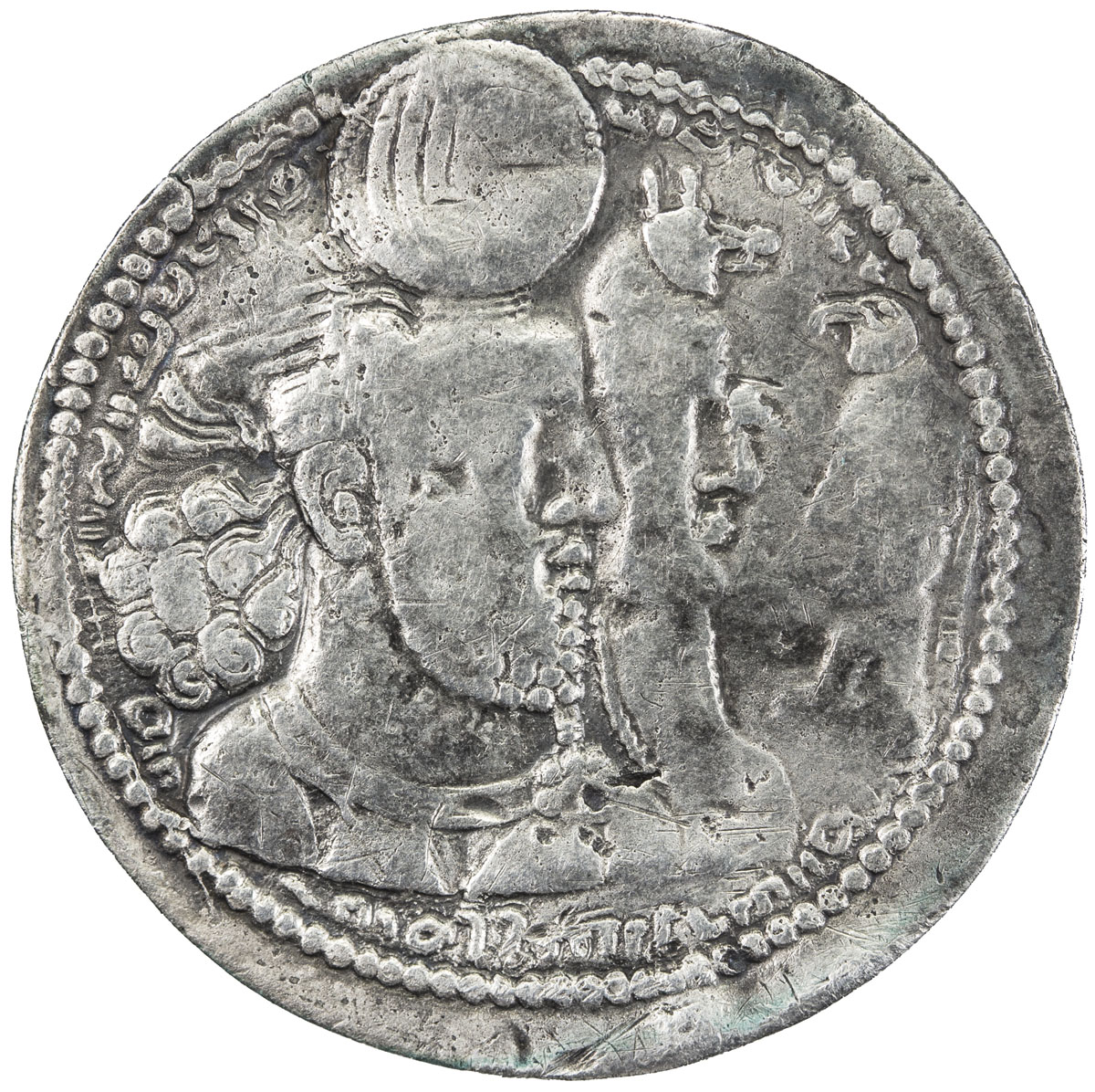 Ancient - Near East,SASANIAN KINGDOM: Varahran II, 276-293, AR drachm (3.92g), G-64, busts of the king and queen facing right, and the son, without diadem, facing left, slightly uneven surfaces, About VF.