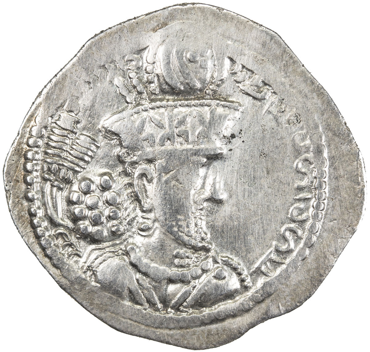 Ancient - Near East,SASANIAN KINGDOM: Shahpur III, 383-388, AR drachm (3.96g), [Herat], G-126, SMS-14, narrow flan, legend on the base of the altar, finest style, assigned by Nikolaus Schindel to the Herat mint, choice EF, R, ex Alan S. DeShazo Collection ...