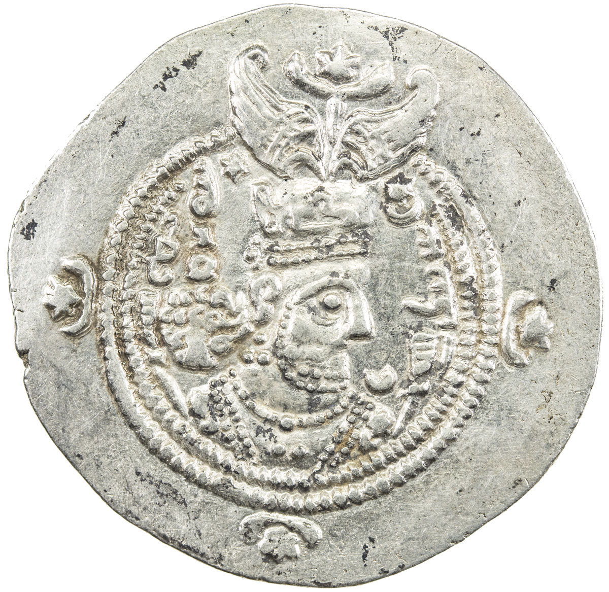 Ancient - Near East,SASANIAN KINGDOM: Khusro II, 591-628, AR drachm (4.02g), YZ (Yazd), year 1, G-208, first series, flat crown without wings, choice VF, R, ex Alan S. DeShazo Collection.