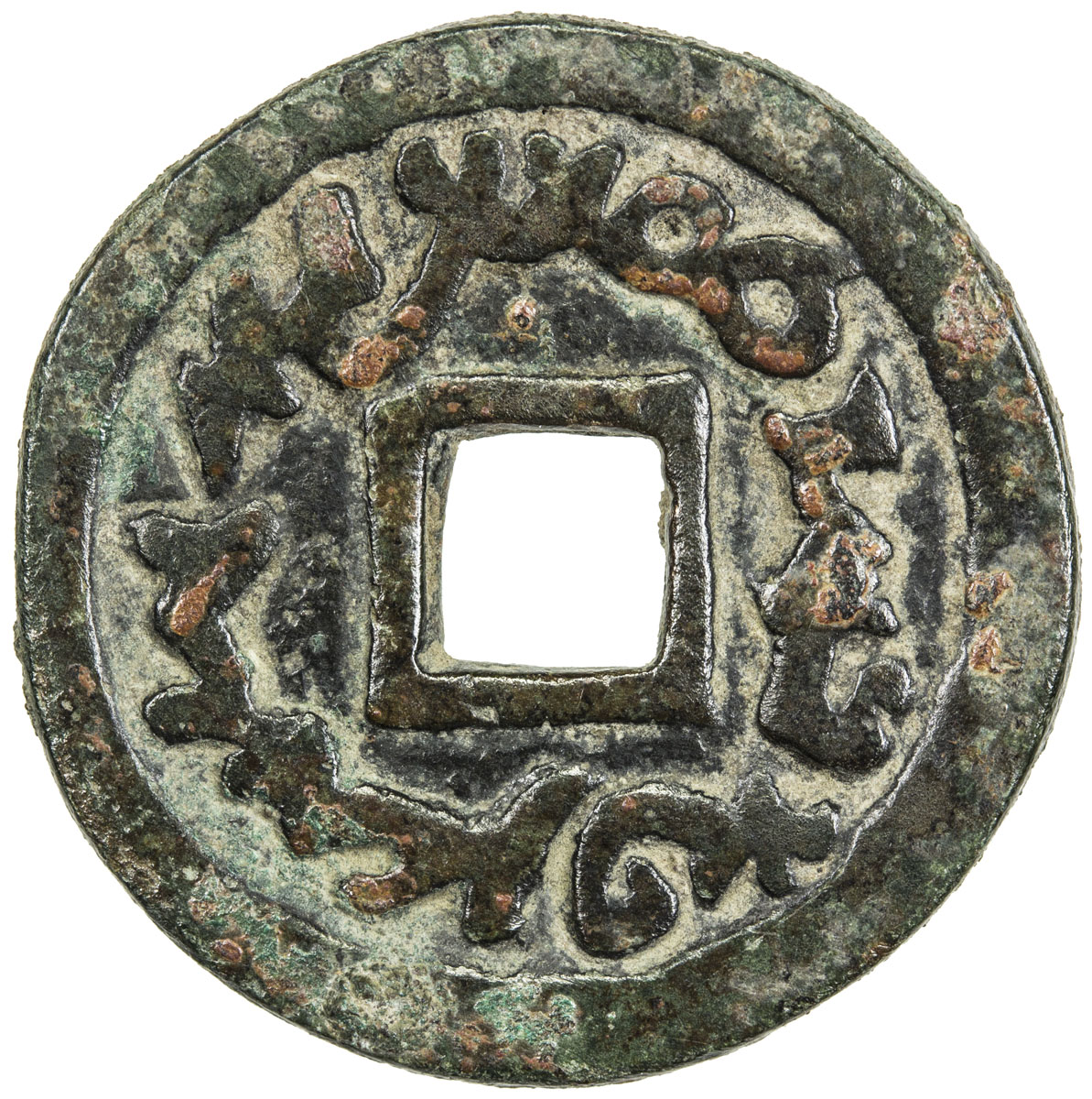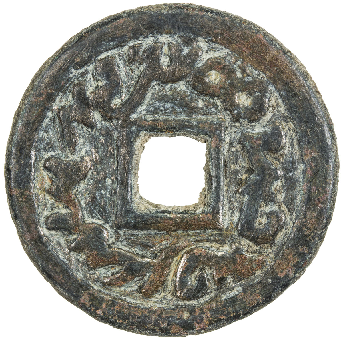 Ancient - Central Asia,SEMIRECHE: Turgesh, 8th century, AE cash (6.32g), Kam-24, Zeno-6317, Sogdian legend , tamgha based around the central square hole, heavy standard, bold VF.