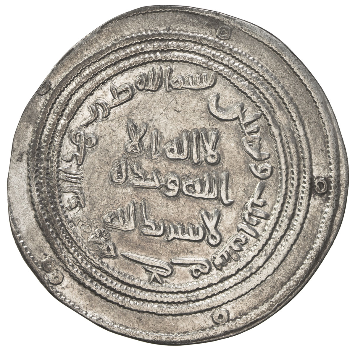 Islamic - Umayyad & Abbasid,UMAYYAD: Abd al-Malik, 685-705, AR dirham (2.68g), Jayy, AH83, A-126, Klat-257, final digit of date athlath, which is the norm for this year at the mint of Jayy, EF.