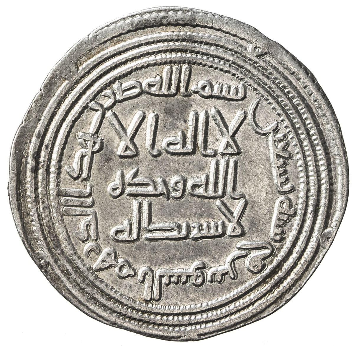 Islamic - Umayyad & Abbasid,UMAYYAD: Abd al-Malik, 685-705, AR dirham (2.68g), Jayy, AH83, A-126, Klat-257, final digit of date athlath, which is the norm for this year at the mint of Jayy, EF.
