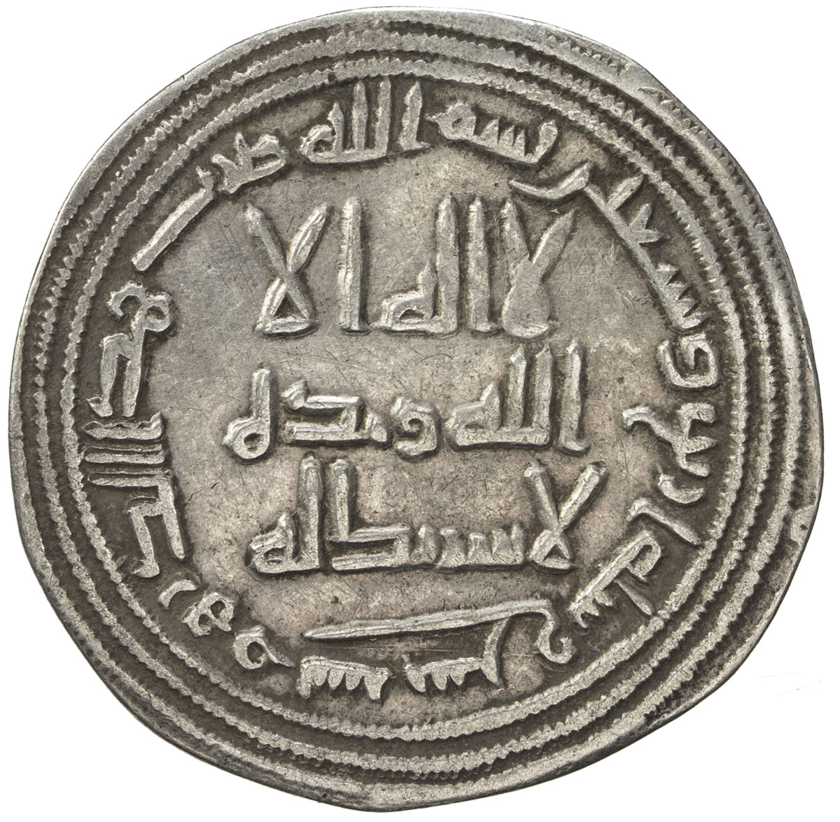 Islamic - Umayyad & Abbasid,UMAYYAD: Abd al-Malik, 685-705, AR dirham (2.68g), Jayy, AH83, A-126, Klat-257, final digit of date athlath, which is the norm for this year at the mint of Jayy, EF.