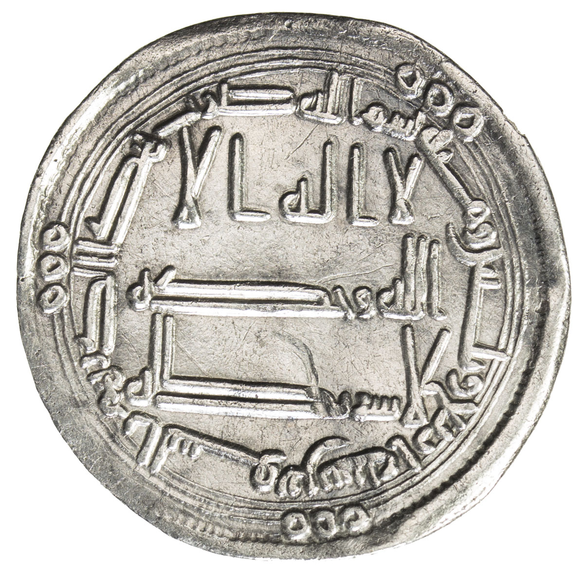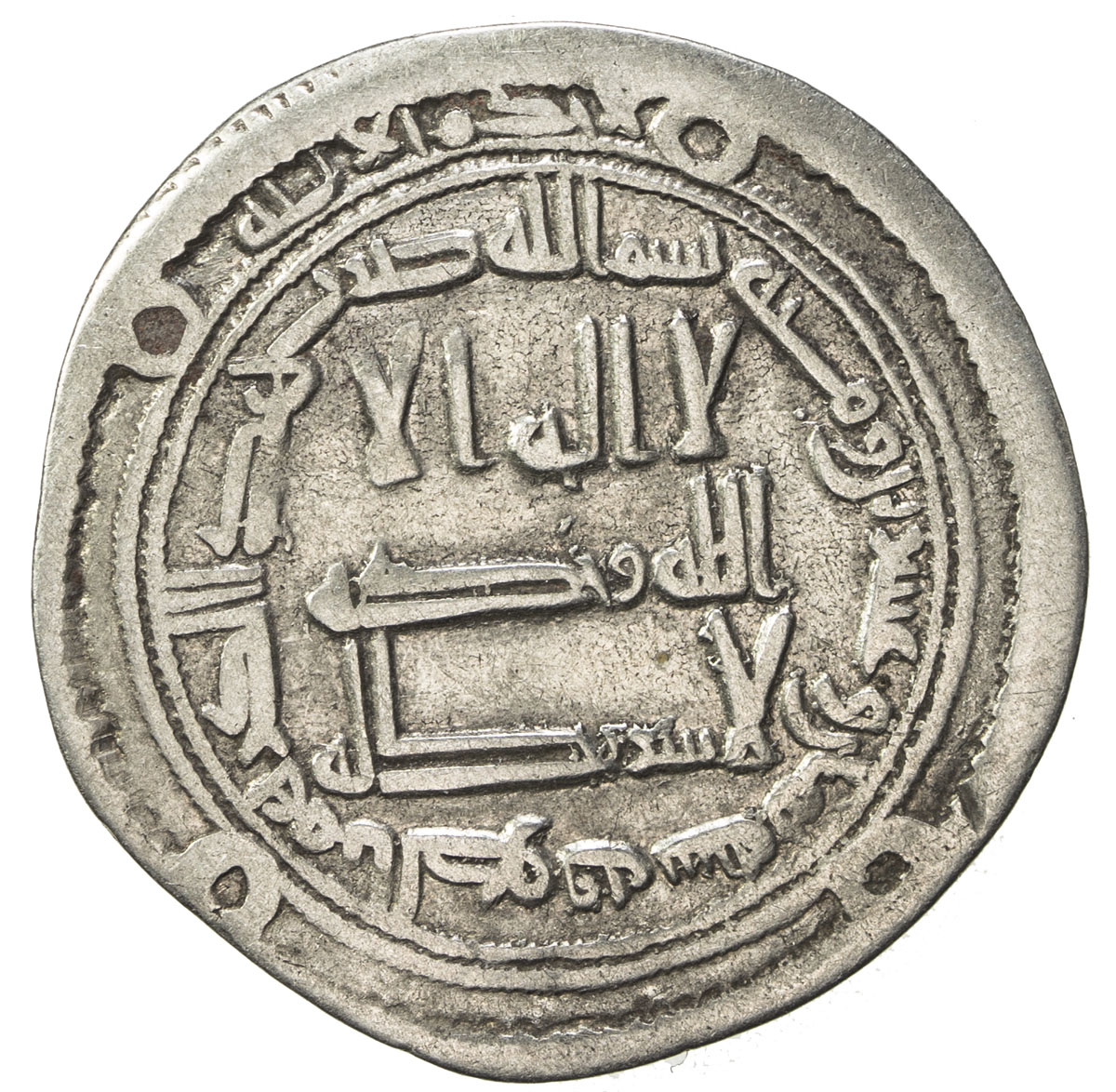 Islamic - Umayyad & Abbasid,ABBASID REVOLUTION: Anonymous, ca. 745-746, AR dirham (2.80g), al-Kufa, AH128, A-207.1, Klat-548a, with Kharijite phrase la hukm illa lillah in the obverse outer margin, Fine to VF.