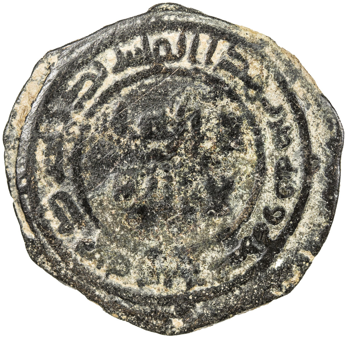Islamic - Umayyad & Abbasid,UMAYYAD: AE fals (3.33g), Iliya (Jerusalem), ND, A-179, with rosette of 7 dots after the mint name in the reverse margin, VF, S.