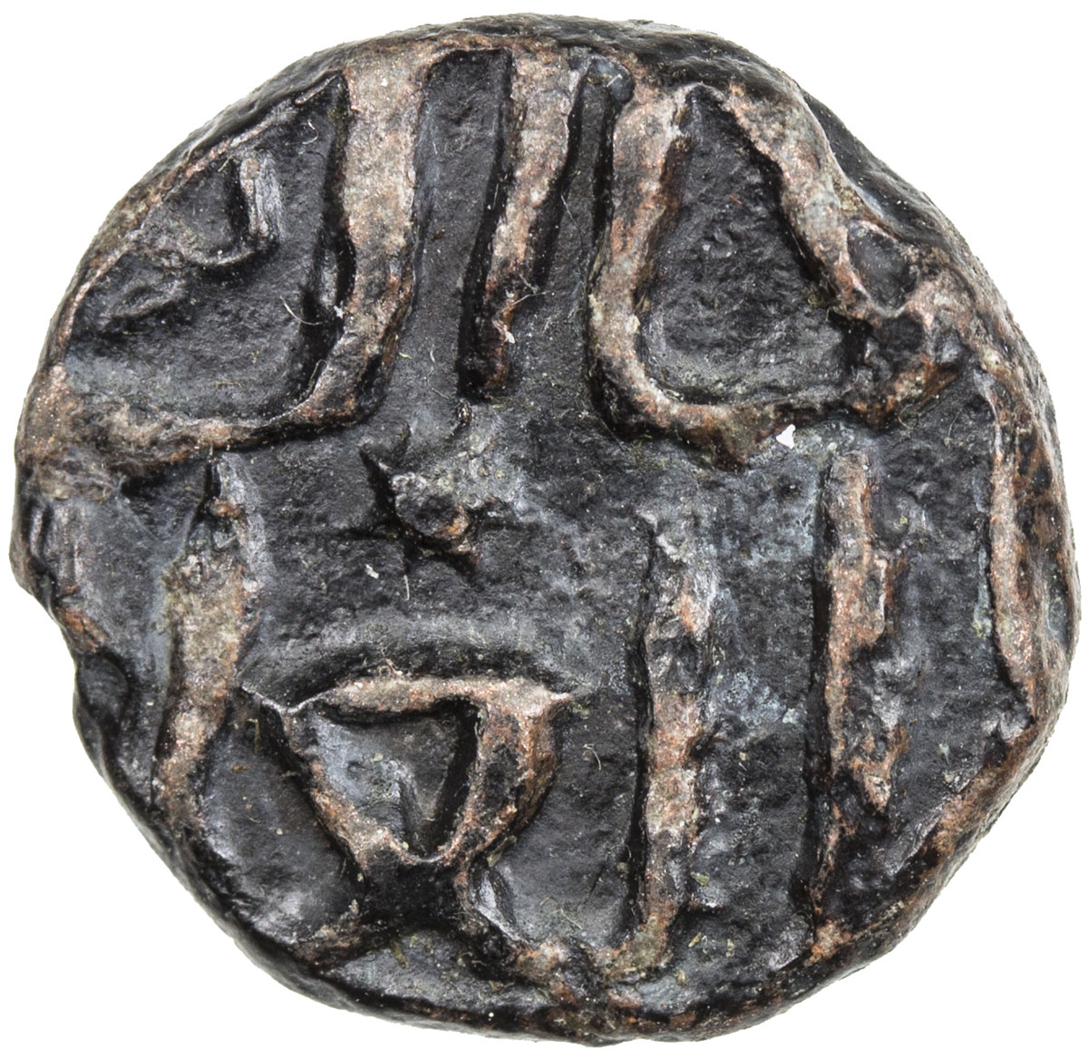 Islamic - Mongol Dynasties,GREAT MONGOLS: temp. Chingiz Khan, 1206-1227, AE jital (3.31g), Kurraman, ND, A-1970B, Tye-370.1, mint name on bull , citing the caliph al-Nasir, evenly struck, VF, RR.