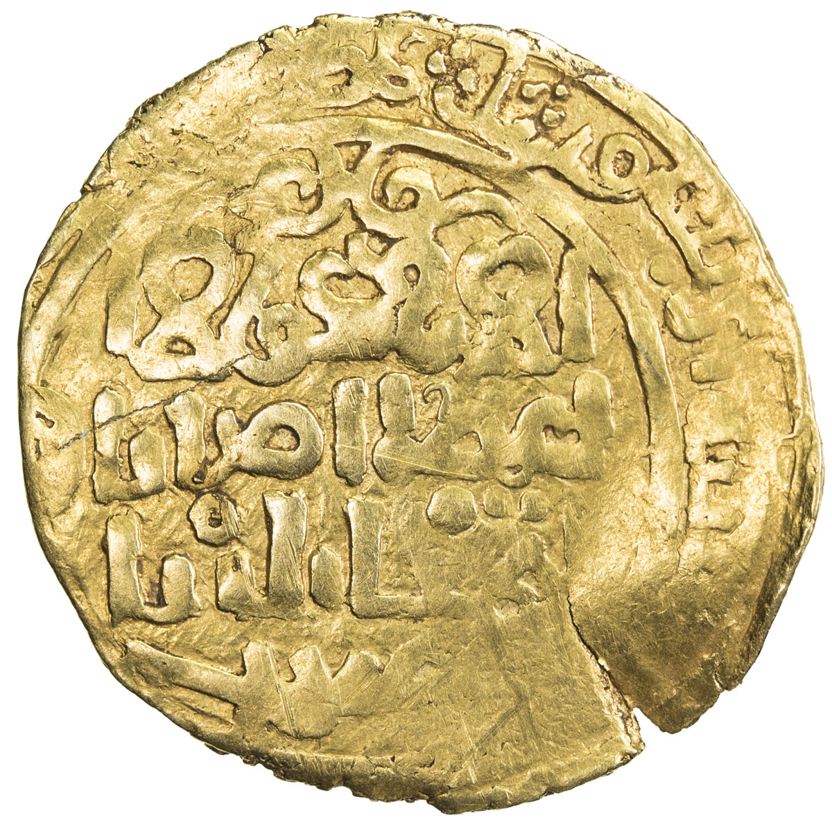 Islamic - Mongol Dynasties,GREAT MONGOLS: Anonymous, ca. 1220s-1230s, AV dinar (2.94g), Bukhara, ND, A-B1967, totally anonymous, kalima only in the field, not even citing the caliph al-Nasir la-Din Allah, mint name below both obverse & reverse field, 1 fl ...