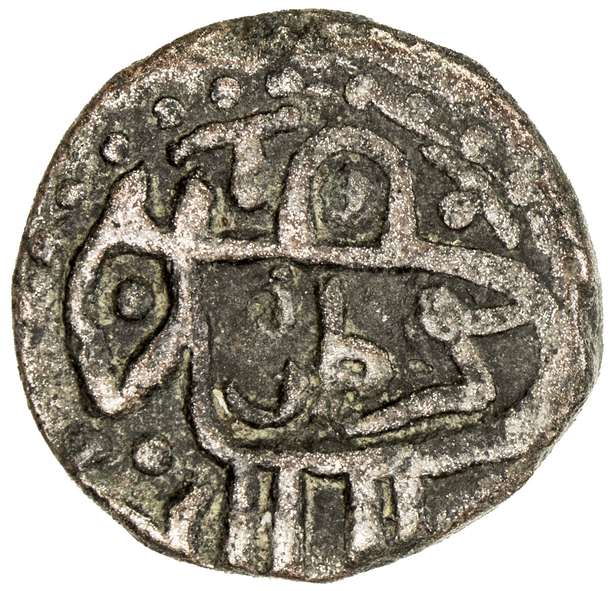 Islamic - Mongol Dynasties,GREAT MONGOLS: temp. Chingiz Khan, 1206-1227, AE jital (3.75g), Qunduz, year 8, A-A1972, Tye-—, the date is most likely AH618, thus well within the lifetime of Chingiz Khan, minor discoloration, VF, R.