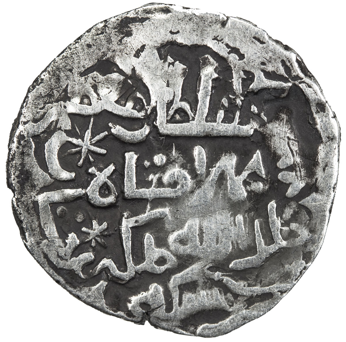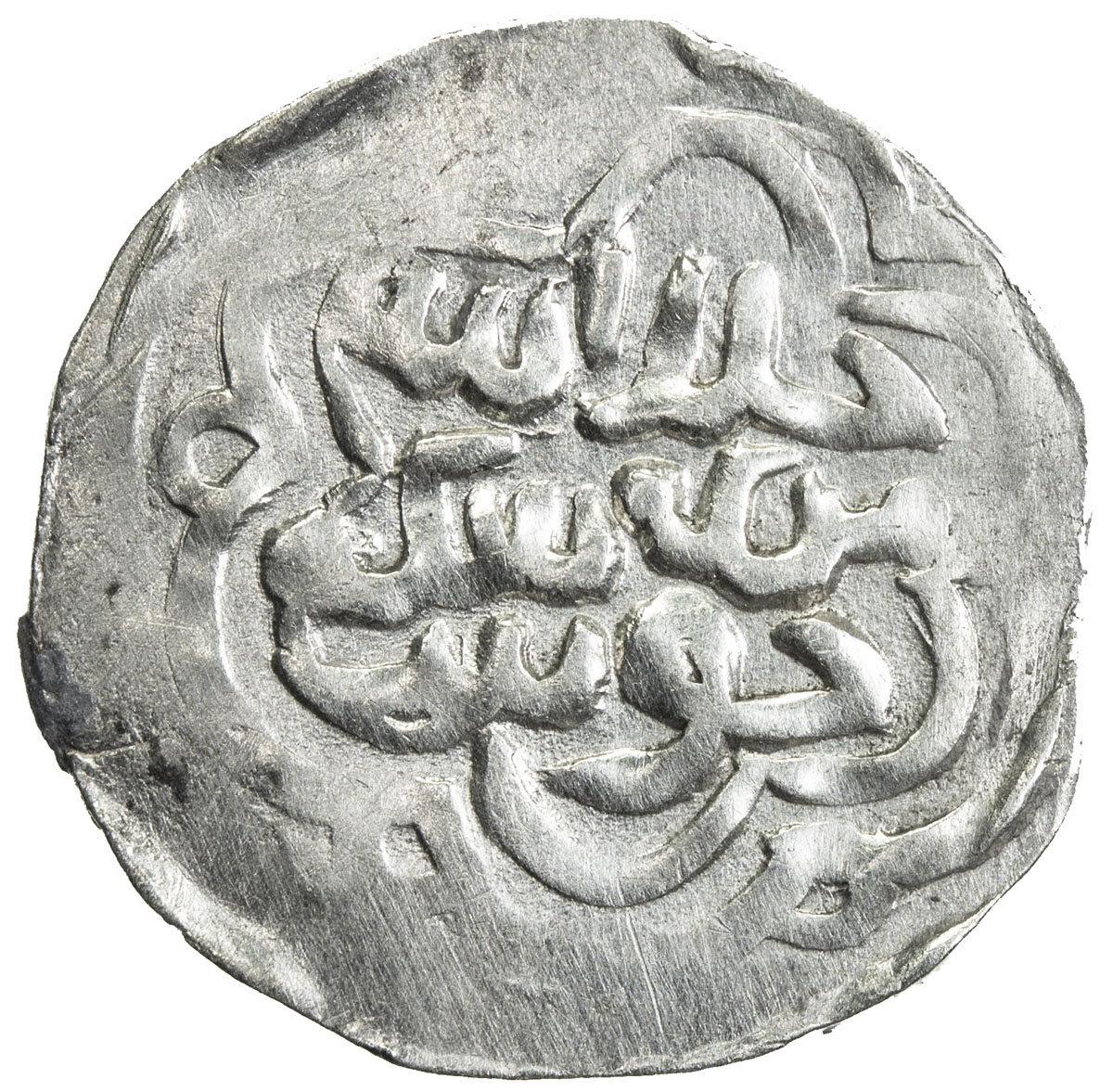 Islamic - Mongol Dynasties,SHAHS OF BADAKHSHAN: Shah Baha al-Din, 1344-1358, AR dinar kebeki (7.72g), Badakhshan, AH761, A-2015, Zeno-38041 (same dies), dated twice on the obverse, once in normal order below the word "shah", once in mirror image in lower right corner of the obverse field, never mounted, VF, RRR.