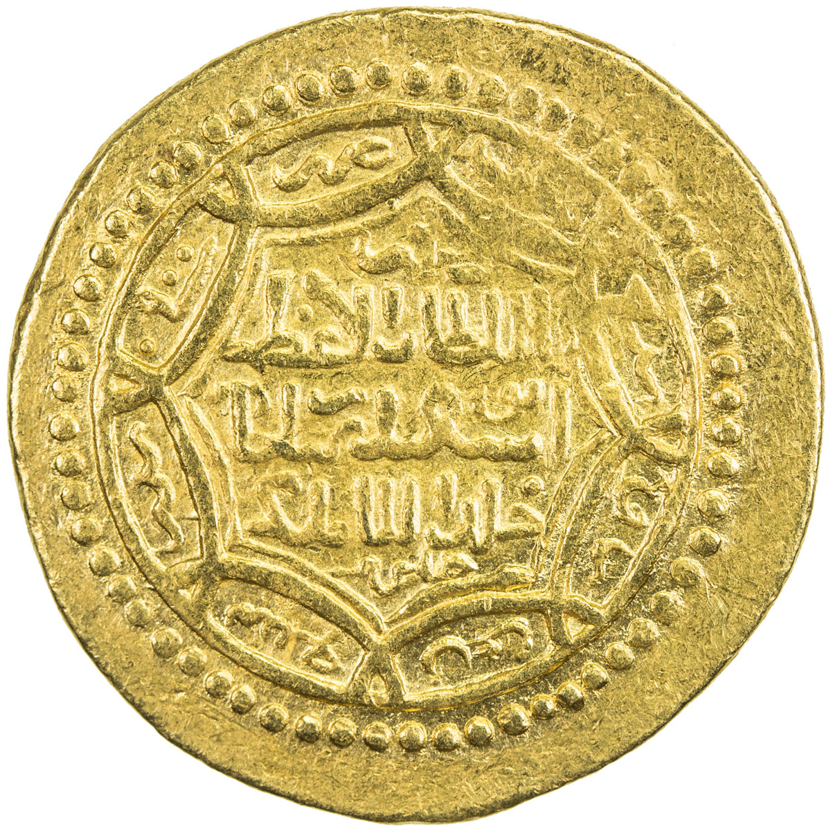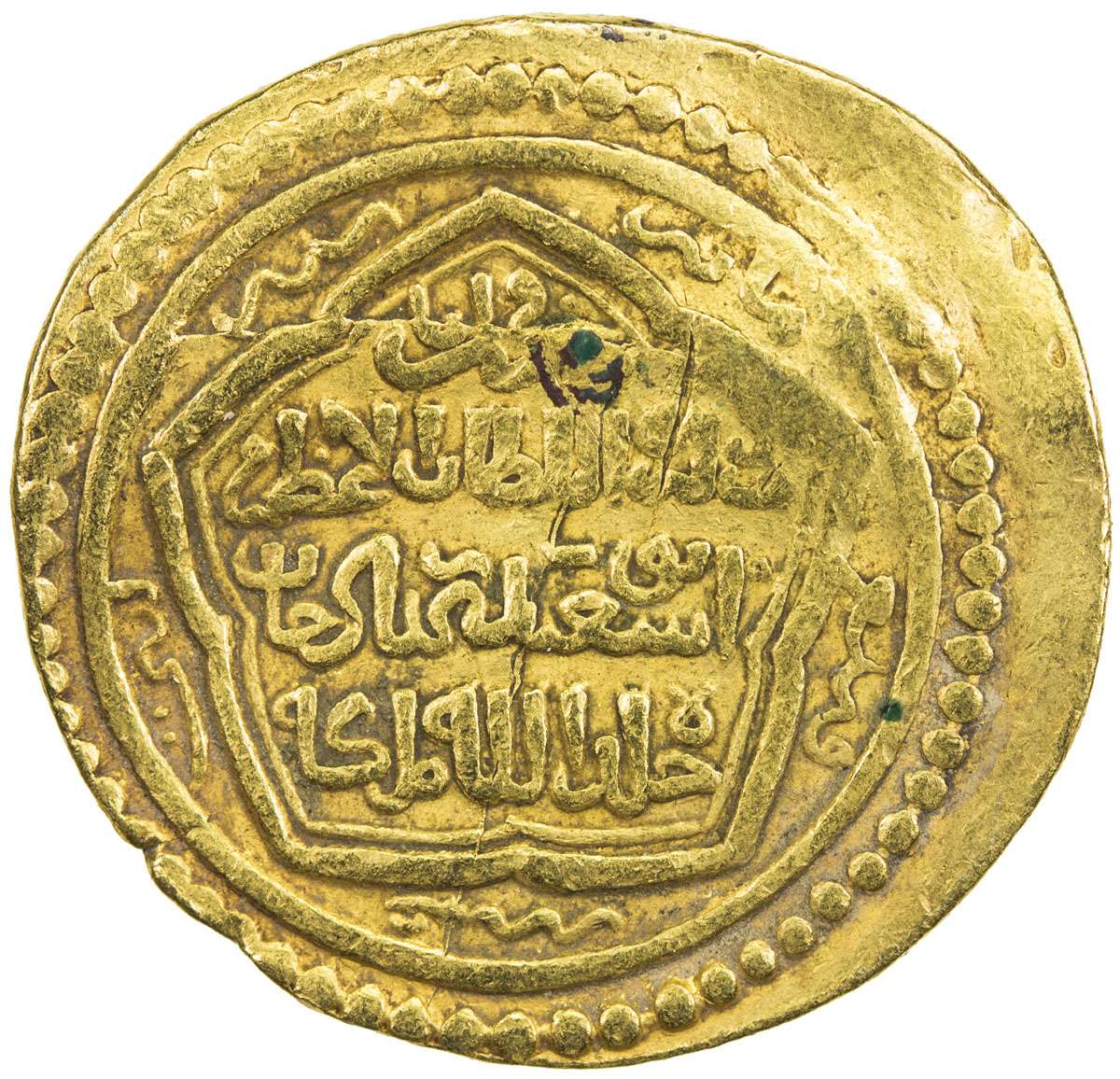 Islamic - Mongol Dynasties,ILKHAN: Abu Said, 1316-1335, AV ½ mithqal (2.05g), Hisn, ND/DM, A-2212var, mint name in lower right corner of reverse, partly off flan but almost certainly Hisn, VF, RR.
