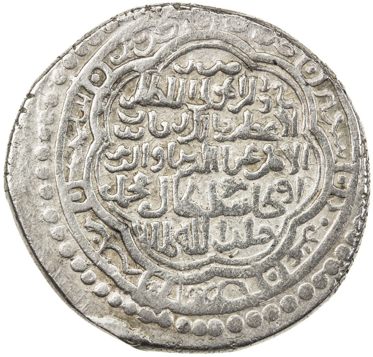 Islamic - Mongol Dynasties,ILKHAN: Ghazan Mahmud, 1295-1304, AR dirham (2.25g), Khabushan, A-2168B, plain circle , square, obverse has rulers name with title padshah-i islam, mint name atop reverse, either date off flan or undated, VF, RR.