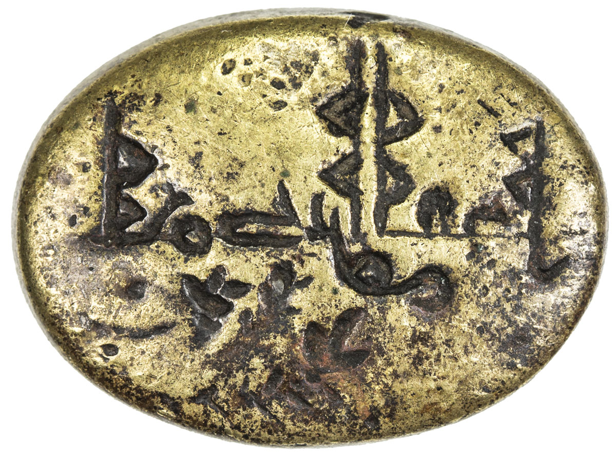 Islamic - Seals, Stamps, Weights,MEDIEVAL ISLAMIC: brass stamp (4.76g), in the name of Ahmad b. al-Fadl (or al-Fazl), style of southeastern Iran or Sind, circa 1000-1500 AD, VF.