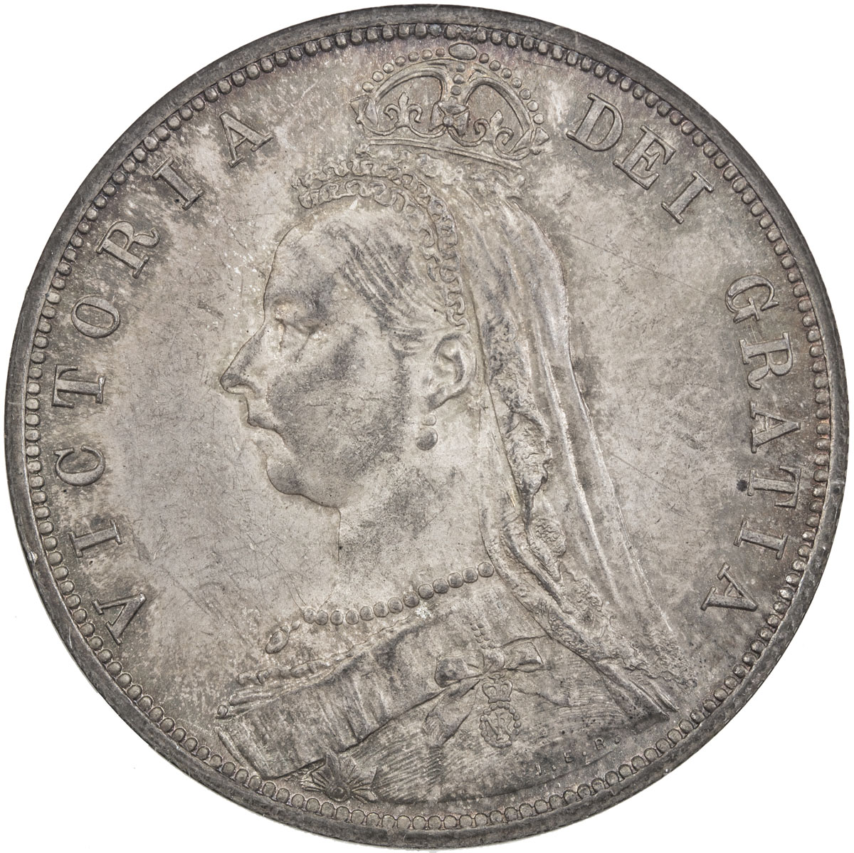 World Coins - Europe,GREAT BRITAIN: Victoria, 1837-1901, AR ½ crown, 1887, KM-764, S-3924, Jubilee head type, pleasing colorful tone, NGC graded MS64, ex Mike Edwards Collection.