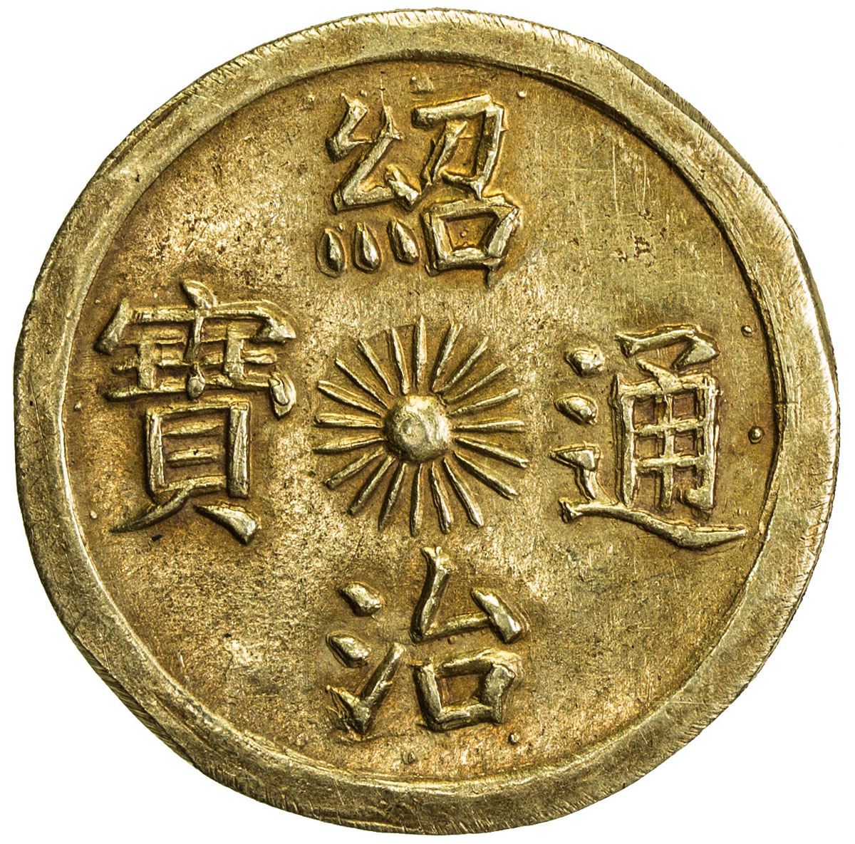 World Coins - Asia & Middle-East,NGUYEN DYNASTY (DAI NAM QUOC): Thieu Tri, 1841-1847, AV tien, Sch-262, two pearls and clouds, filed rim at 2 oclock and 7 oclock, otherwise a lovely example and a rarely encountered type, EF, RR.