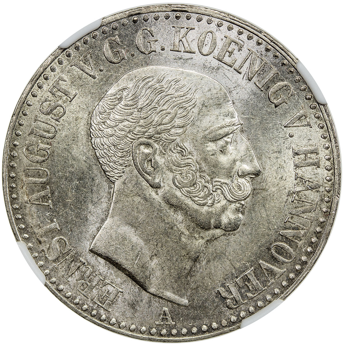 World Coins - Europe,HANOVER: Georg V, 1851-1866, AV krone, 1866-B, KM-231, Fr-1183, J-135, PCGS graded MS62. The gold krone was adopted with the new Vereinsthaler in 1857 and was part of the last Taler-standard coinage.