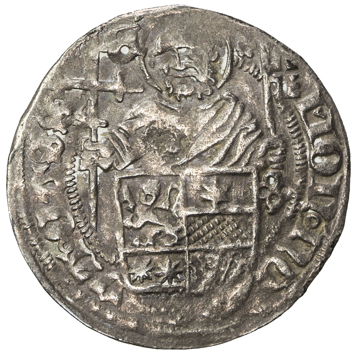 World Coins - Europe,HESSE: Wilhelm I, 1483-1493, ½ petersgroschen (1.29g), Schütz-360, St. Peter above arms , triangle of shields, nice strike, VF, R, ex Don Erickson Collection.