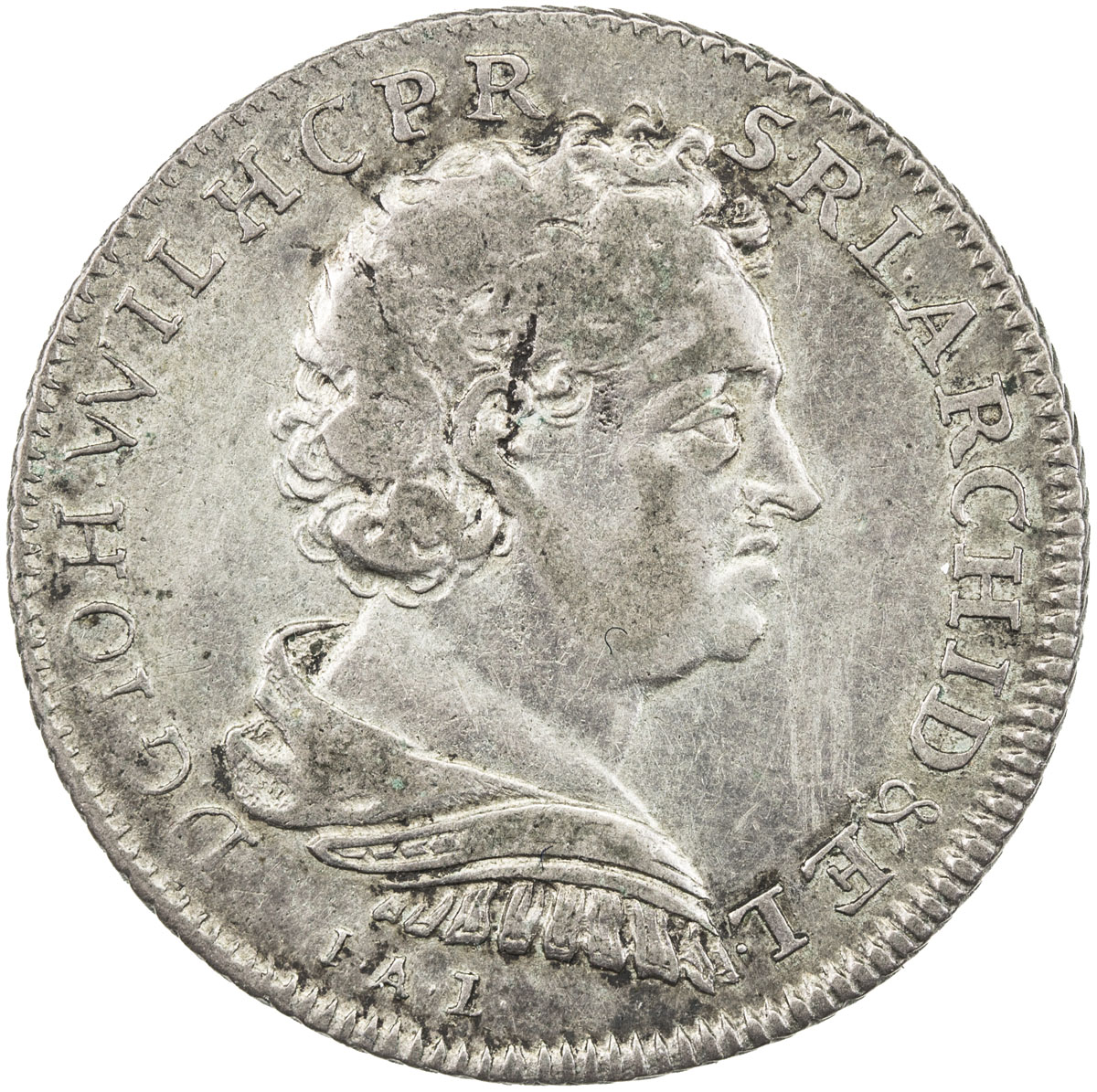 World Coins - Europe,JÜLICH-BERG: Johann Wilhelm von Neuburg, 1679-1716, AR 1/6 thaler (5.43g), 1709-IAL, KM-125, one-year type, minor weakness of strike on the reverse, VF to EF, R.