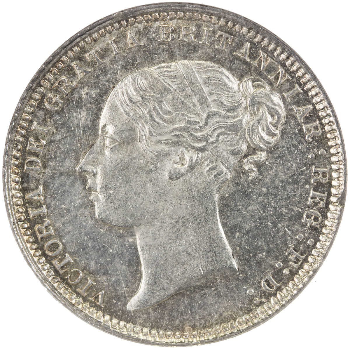 World Coins - Europe,GREAT BRITAIN: Victoria, 1837-1901, AR sixpence, 1873, KM-751.1, S-3910, nice light tone, semi-prooflike obverse, with reverse die number 4, NGC graded MS63, ex Mike Edwards Collection.
