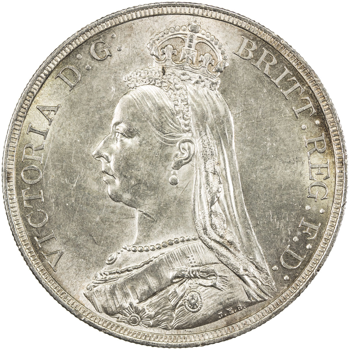 World Coins - Europe,GREAT BRITAIN: Victoria, 1837-1901, AR crown, 1893, KM-783, S-3937, veiled head type, year LVIIl on the edge, light tone, NGC graded VF35, ex Mike Edwards Collection.