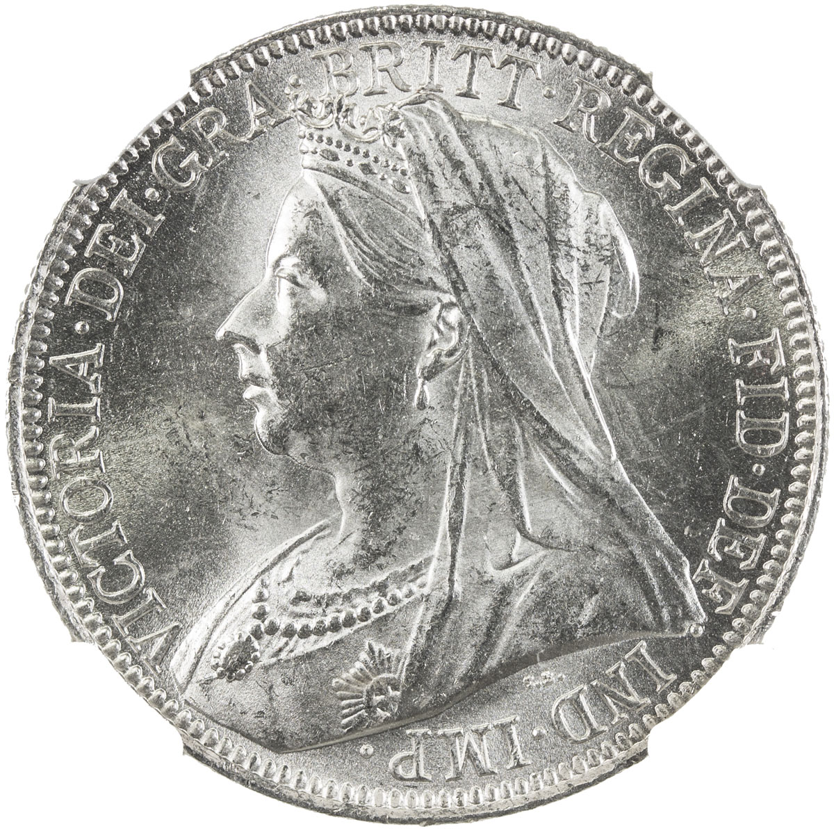 World Coins - Europe,GREAT BRITAIN: Victoria, 1837-1901, AR florin, 1901, KM-781, S-3939, blast white surfaces, NGC graded MS63, ex Mike Edwards Collection.
