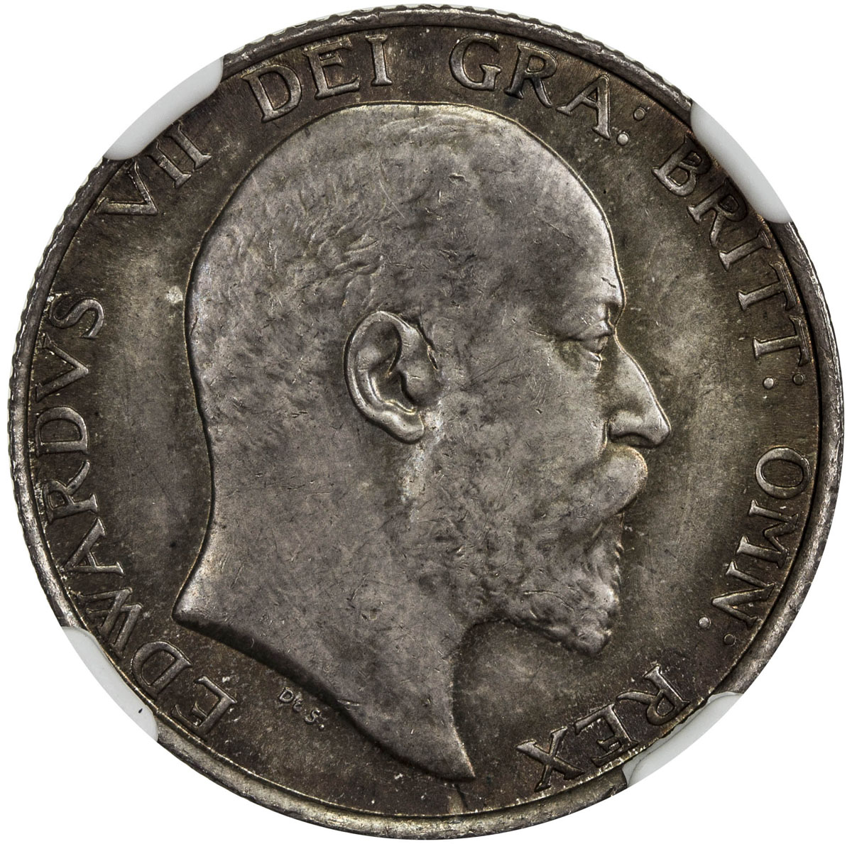World Coins - Europe,GREAT BRITAIN: Edward VII, 1901-1910, AR shilling, 1902, KM-800, S-3982, a lovely example with colorful peripheral toning, NGC graded MS65.