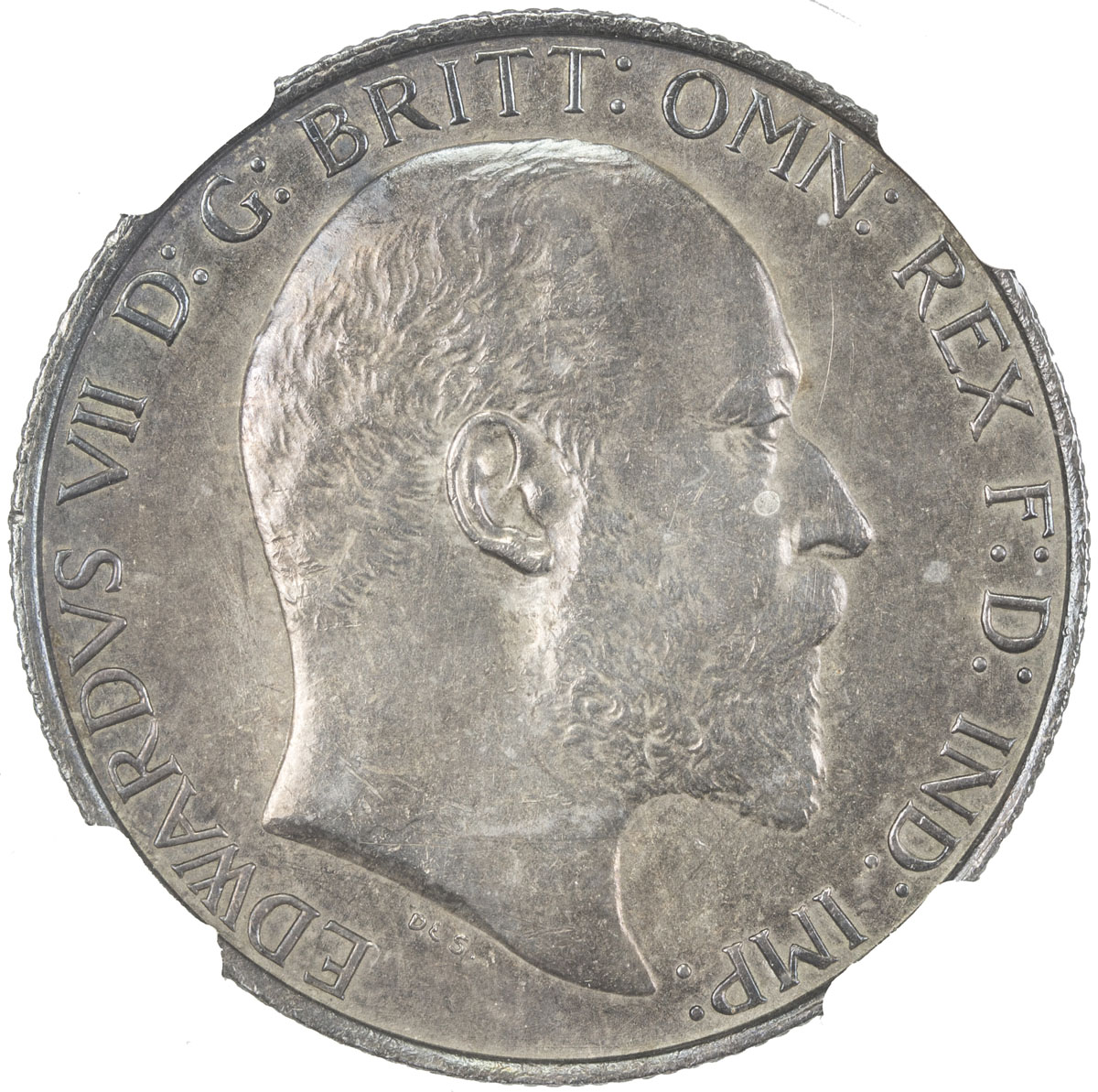 World Coins - Europe,GREAT BRITAIN: Edward VII, 1901-1910, AR shilling, 1907, KM-800, S-3982, lightly toned, NGC graded MS62, ex Mike Edwards Collection.