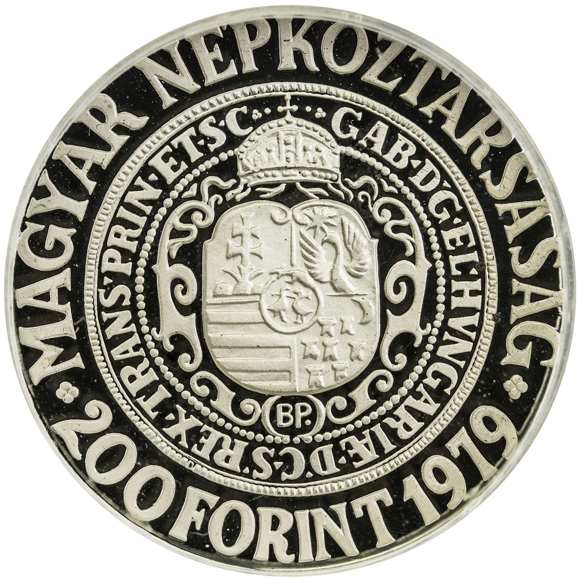World Coins - Europe,HUNGARY: AR 200 forint piedfort, 1979, KM-P23, piedfort of KM-616, 350th Anniversary of the Death of Gabor Bethlen, mintage of 2,500 pieces, NGC graded PF69 UC, S.