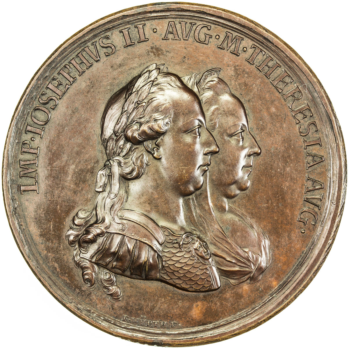 World Coins - Europe,TRANSYLVANIA: Maria Theresa, 1740-1780, AE medal, 1769, Resch-190, 59mm, bronze medal by Franz Xaver Würth for Improvement of Agriculture, Mining and Trade, IMP IOSEPHVS II AVG M THERESIA AVG, conjoined busts of the emperor and Maria ...
