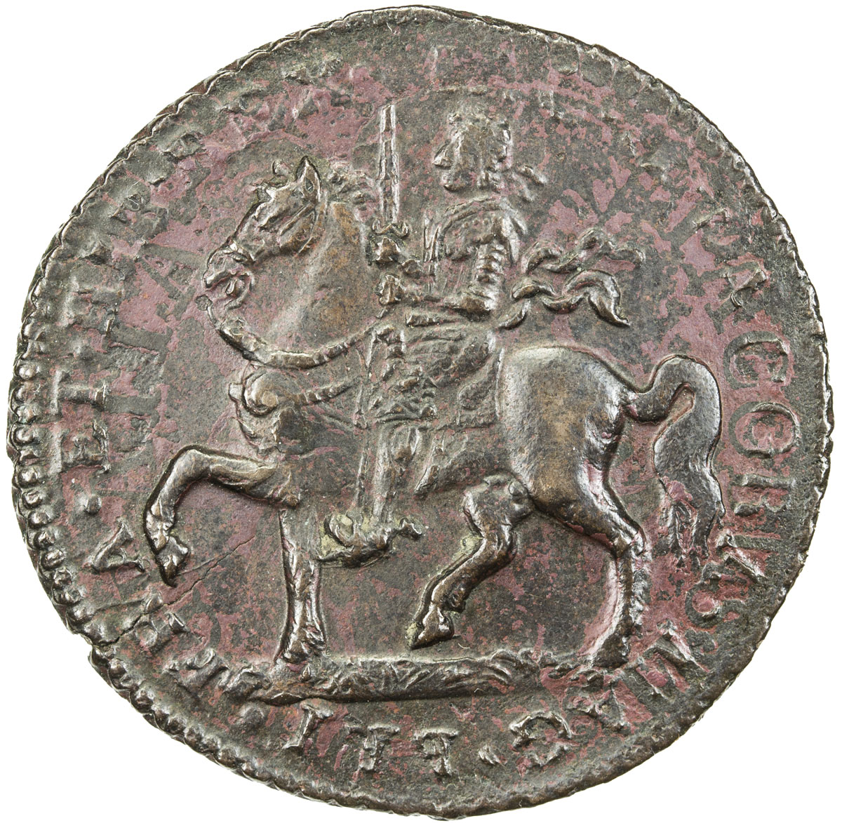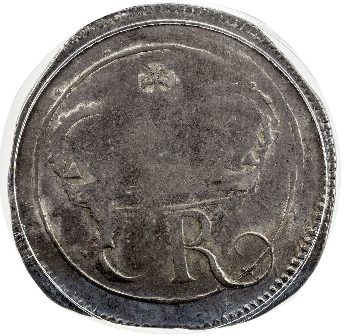 World Coins - Europe,IRELAND: Charles I, 1625-1649, AR crown, ND (1643-4), KM-64, Dav-3792, S-6544var, "Ormonde" issue, Lords Justices Coinage during the Great Rebellion, central details weak (as usual), nicely centered full flan, PCGS graded VF25 Secure ...