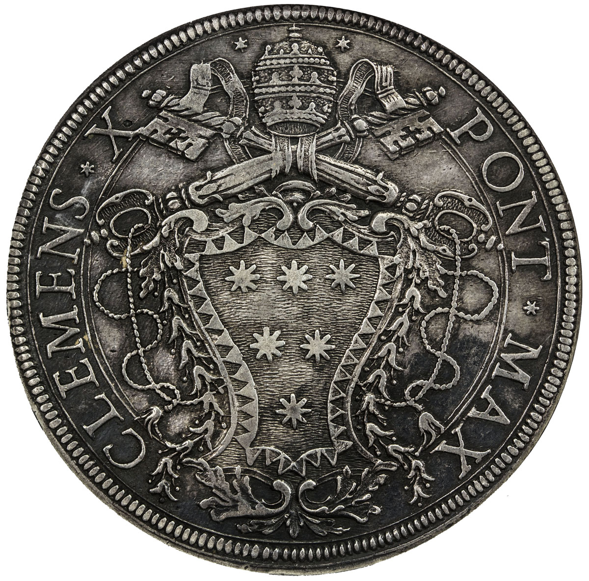 World Coins - Europe,PAPAL STATES: Clement X, 1670-1676, AR piastra, 1675-R, KM-368, Dav-4078, Berman-2007, Holy Year issue, a most pleasing coin with no problems and light even wear, NGC graded EF45, ex David Vice Collection.