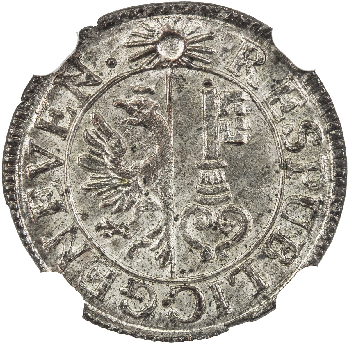 World Coins - Europe,BEROMÜNSTER: AR ½ thaler, ND (1720 and later), KM-4var, cf. Inwyler-48, coat of arms , Archangel Michael slaying the devil, NGC graded MS63.