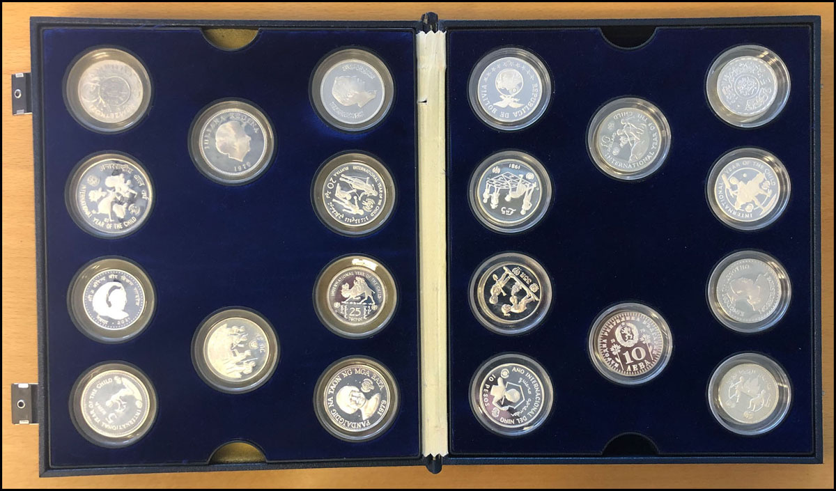 World Coins - Group Lots,WORLDWIDE:LOT of 30 UNICEF 1979-1981 International Year of the Child silver proof coins, This is a complete set of all 30 coins, consisting of silver coins from these countries: Seychelles, Panama, Malta, United Arab Emirates, Tun ...