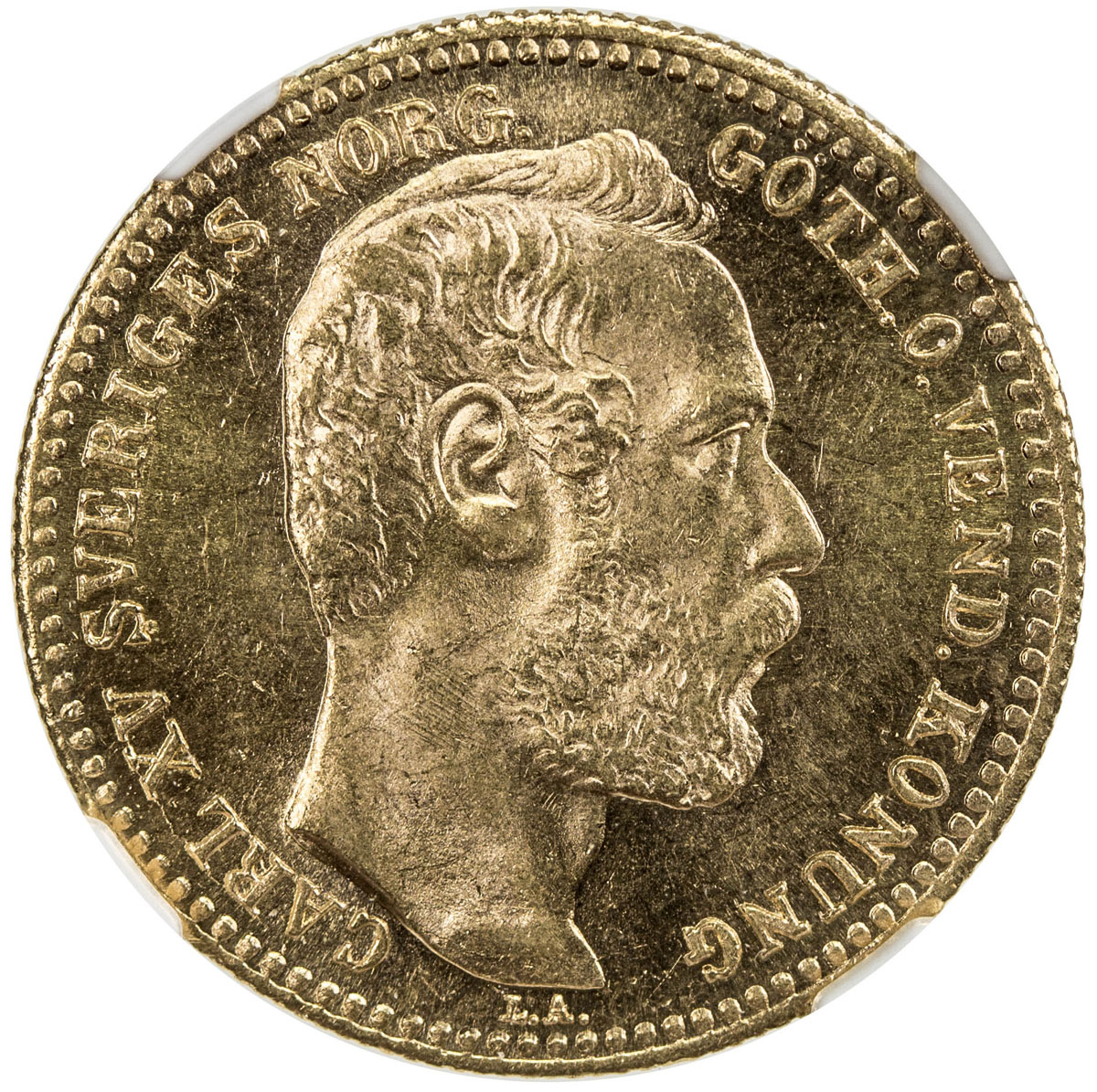 World Coins - Europe,SWEDEN: Carl XV, 1859-1872, AV carolin, 1869, KM-716, Y-A10, very lustrous with a minimum of marks, NGC graded MS64, ex John Lund Collection.
