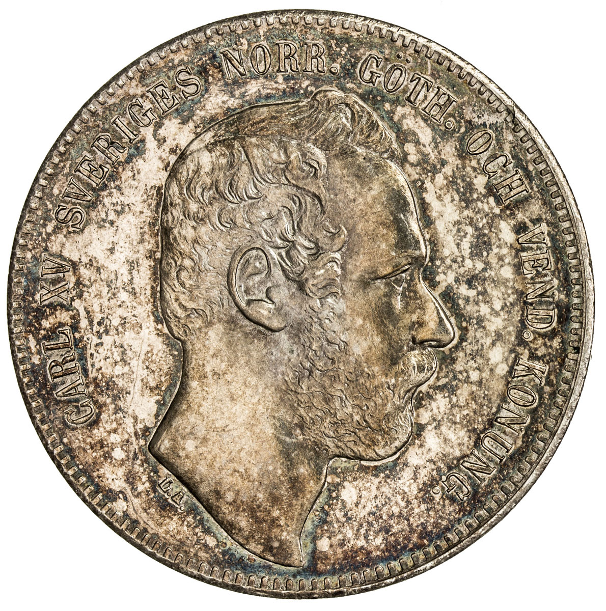 World Coins - Europe,SWEDEN: Carl XV, 1859-1872, AR riksdaler species, 1865, KM-496, Y-10.1, initials ST, very lightly toned, NGC graded MS62, ex John Lund Collection.