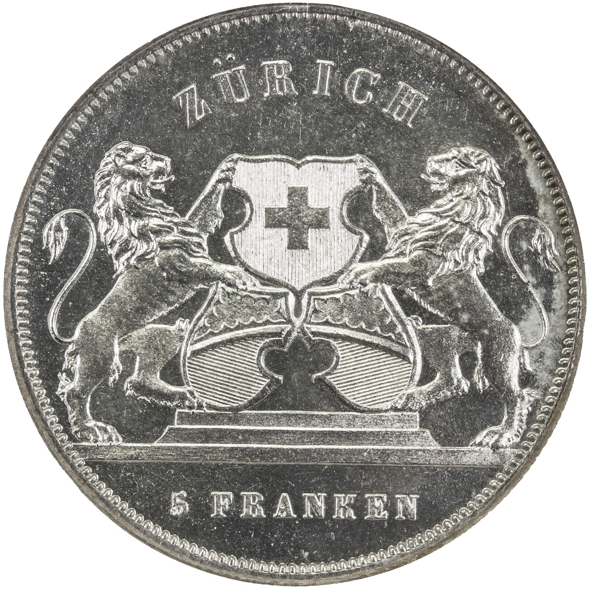 World Coins - Europe,SWITZERLAND: AR 5 francs, 1859, Bruce-XS5, Federal Shooting Festival in Zürich, mintage of only 6,000 pieces, NGC graded MS64, S, ex Mike Edwards Collection.