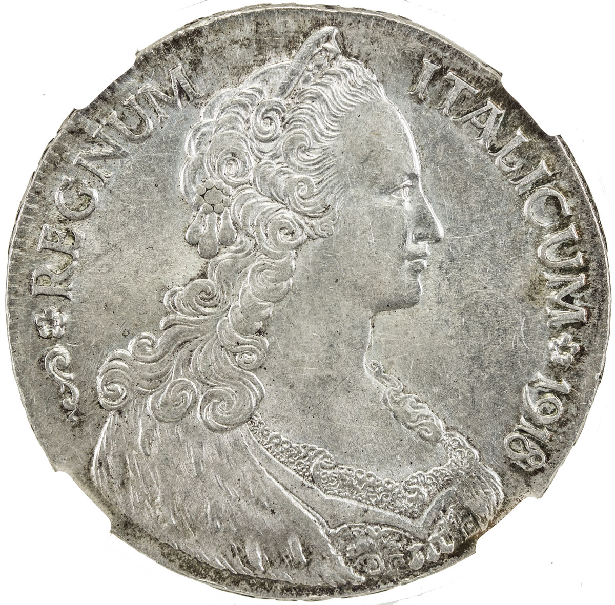 World Coins - Africa,ERITREA: Vittorio Emanuele, 1900-1945, AR tallero, 1918-R, KM-5, design derived from the 1780 thaler with the bust of Maria Theresa and the arms of Austria, NGC graded AU58.