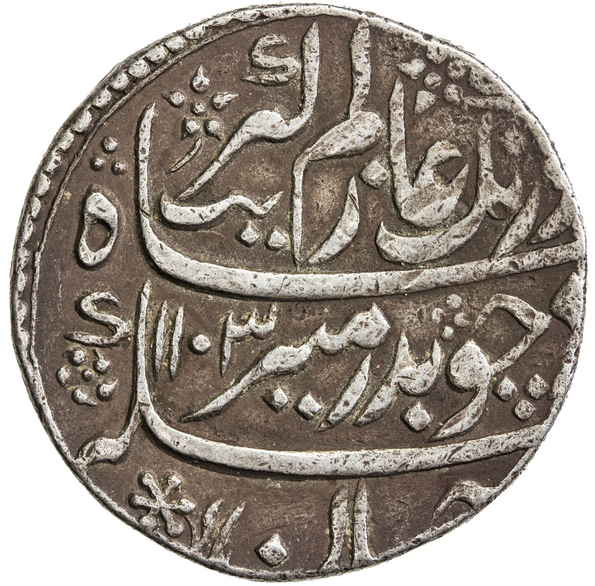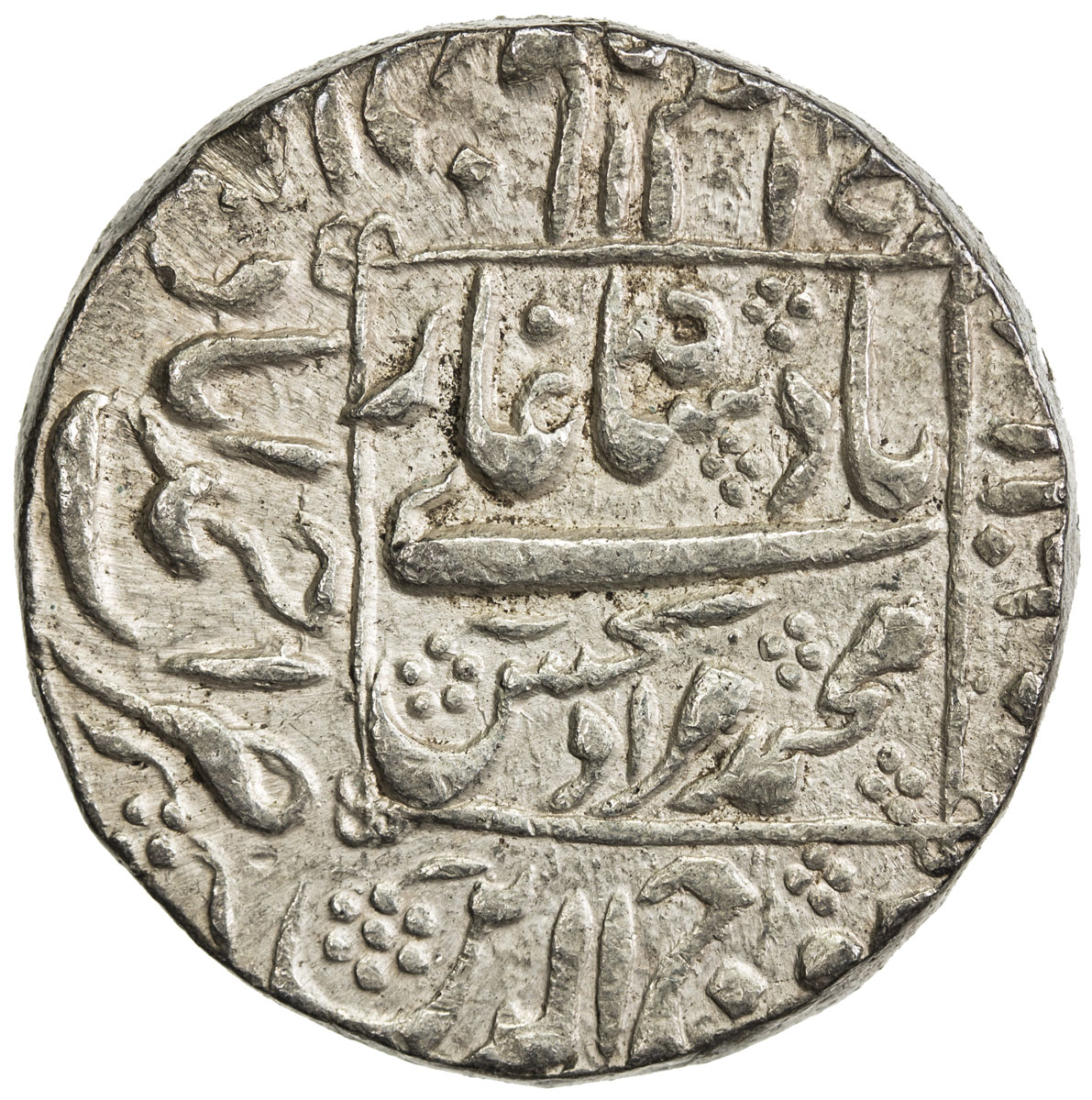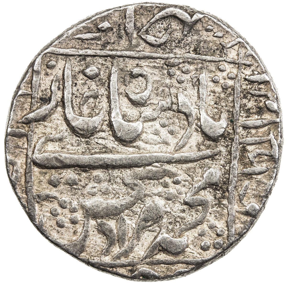 India - Mughal Empire,MUGHAL: Shah Jahan I, 1628-1658, AR rupee (11.34g), Aurangnagar, AH1048 year 11, KM-235.30, extremely rare mint, nice strike, 2 testmarks, VF, RRR. Aurangnagar was the name given by Aurangzeb to the town of Mulher with its adjoini ...