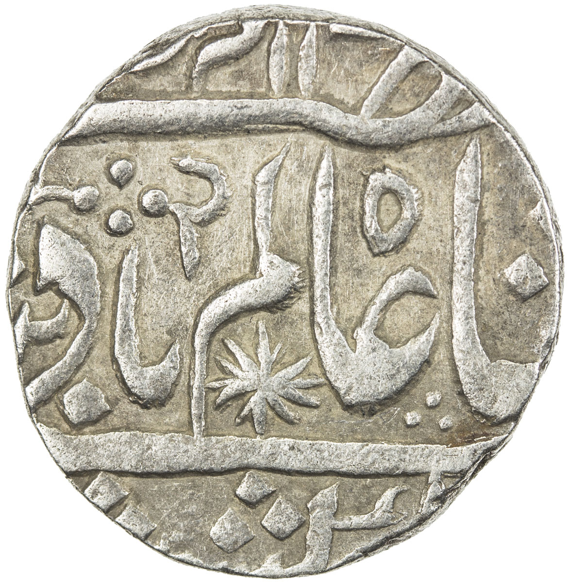 India - Mughal Empire,MUGHAL: Alamgir II, 1754-1759, AR rupee (11.31g), Jodhpur, AH1167 year one (ahad), KM-—, Lingen-J.02.02, with lengthy couplet including the laqab aziz al-din", also with the mint epithet dar al-mansur, very rare, technically only th ...