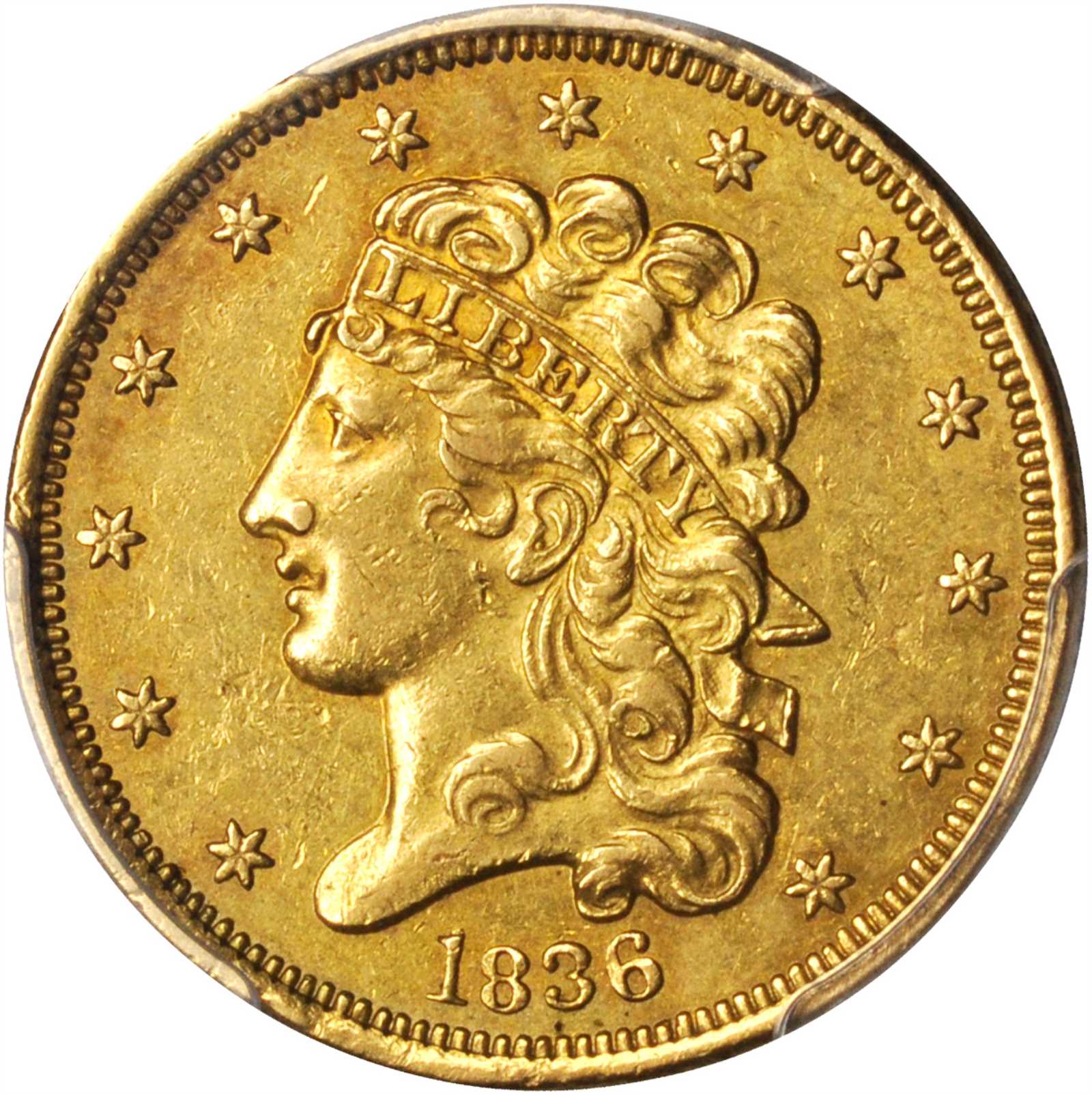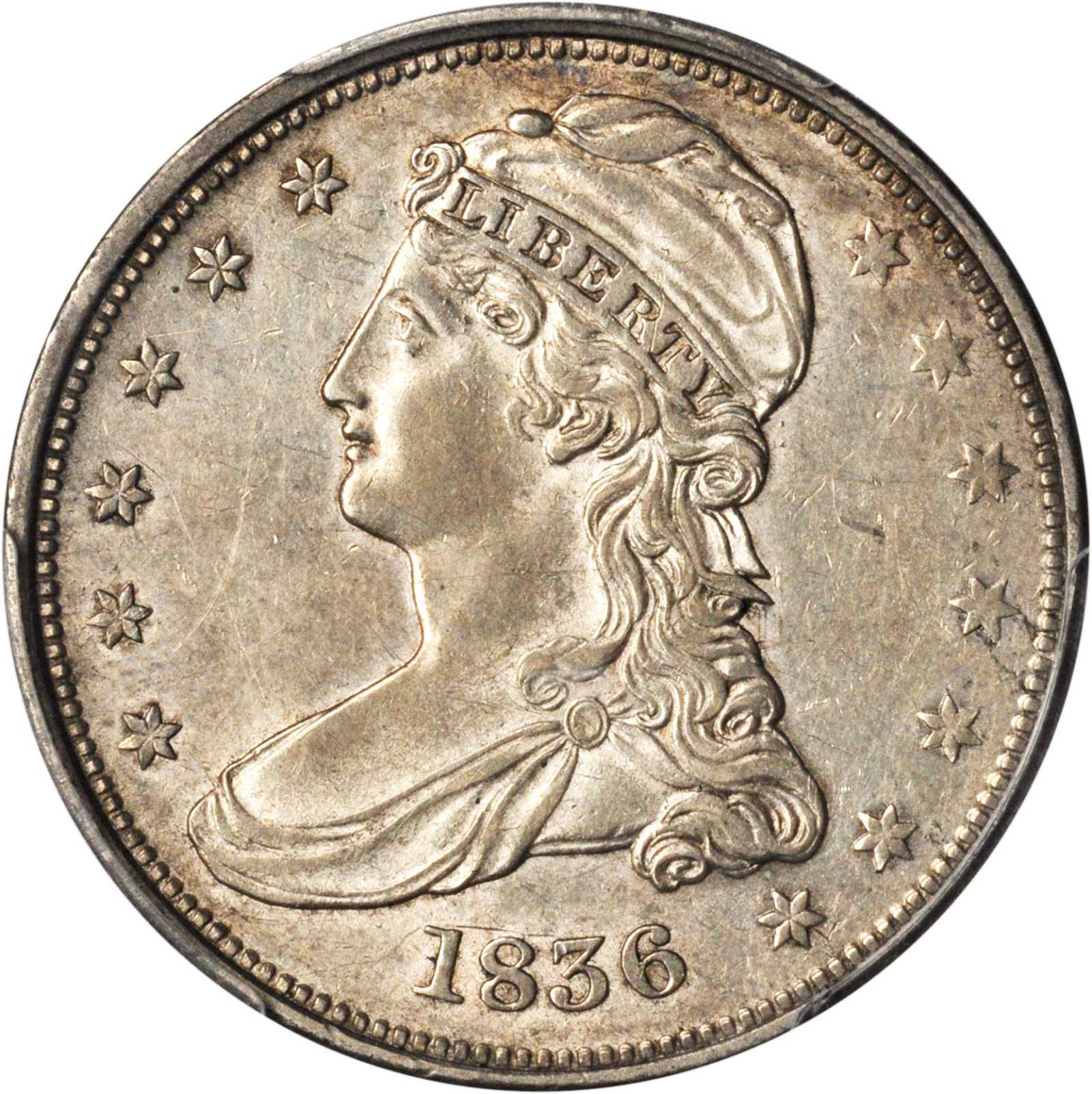 1836 Capped Bust Half Dollar. Reeded Edge. 50 CENTS. GR-1, the only known dies. Rarity-2. AU-53 (PCGS).Lovely golden-gray surfaces and overall sharp to full striking detail in an example of this classic key date half dollar issue. Plenty of original mint luster remains to further tempt the quality conscious collector. Though Walter Breen divined a mintage figure of 1,200 circulation strikes for the 1836 Reeded Edge half dollar decades ago, the true figure is undoubtedly several thousand higher. Breen worked from delivery statistics that showed 738,000 half dollars coined in November 1836 and 1,034,200 struck in December, but was otherwise nonspecific. While the first Reeded Edge half dollars were struck in November, Robert W. Julian has described "technical difficulties" that "were serious enough that [Chief Coiner Adam Eckfeldt] would be forced to return to the screw press and lettered-edge half dollars." Given the population of surviving 1836 Reeded Edge half dollars today, Julian has estimated that the mintage was actually closer to 5,000 pieces. Between the legendarily elusive Small Eagle half dollars of 1796 and 1797 and the scarce Philadelphia Mint dates between 1879 and 1890, no other half dollar issue approaches the low mintage of the 1836 Reeded Edge. The number struck was just a fraction of such well regarded dates as 1794 and 1815, without the relatively high survivorship and large Proof mintages of the final decade of the Liberty Seated design. Beyond its evident historical importance, the 1836 Reeded Edge has always been admired as a rarity. For most of the 19th century, this issue was deemed a pattern, too rare to have been issued for circulation. While listed in J. Hewitt Judds <em>United States Pattern, Trial, and Experimental Pieces</em> as Judd-57, a listing that remains in modern editions out of a sense of tradition, the 1836 Reeded Edge half dollar is now acknowledged as a regular issue coin. The vast majority of survivors show significant wear, AU survivors such as this scarce and always in demand.From the Boston Old City Hall Collection.