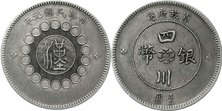 Republik 1912-1949. Dollar (Yuan) Jahr Nien = 1912. Provinz Szechuan, Pragung der Militar-Regierung Lin Gwo Ming 366 Yeom. 456.1 sehr schon