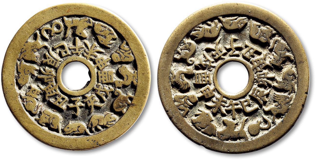 早期“十二生肖”花钱共2枚不同,直径分别为:33mm、34.1mm,美品