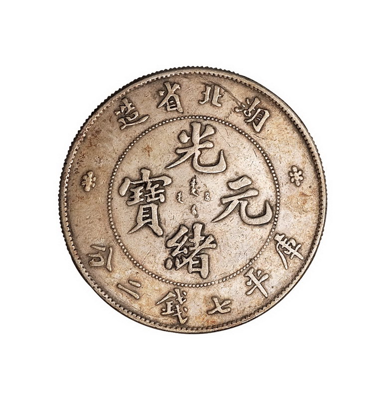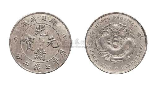 湖北省造光绪元宝“本省”七钱二分银币,为清代银币中之大名誉品,极为珍罕,极美品