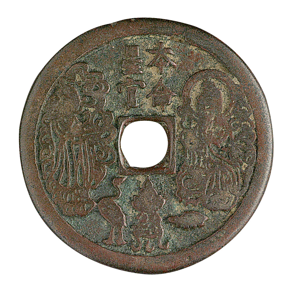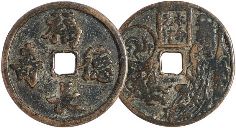 辽·“福德长寿”背“本命之神”狗花钱(直径:52.6mm),美品