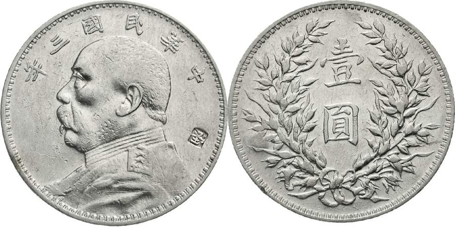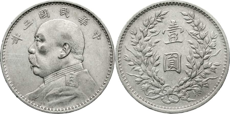 Republik 1912-1949. Dollar (Yuan) Jahr 3 = 1914. Prasident Yuan Shih-kai. Lin Gwo Ming 63 Yeom. 329 sehr schon, kl. Kratzer