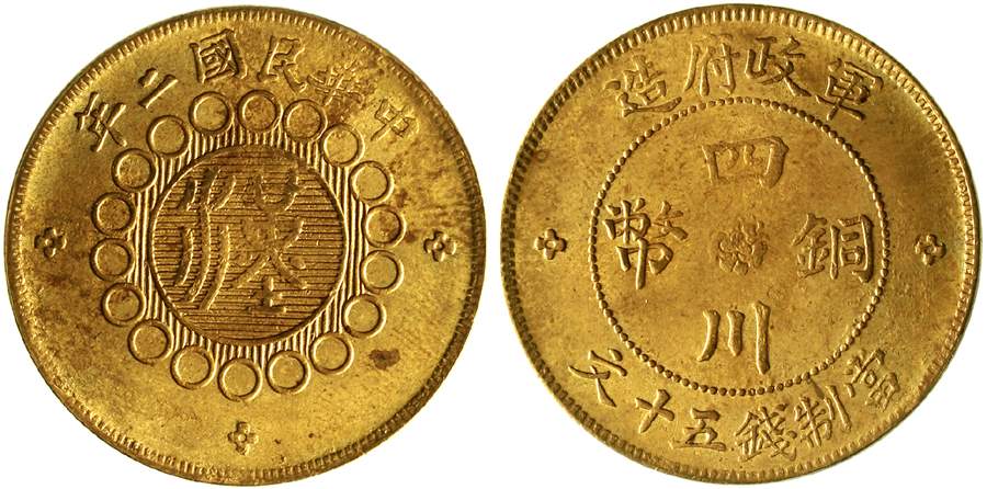Republik 1912-1949. 50 Cash Messing, Jahr 2 = 1912, Szechuan Yeom. 449 vorzuglich/Stempelglanz