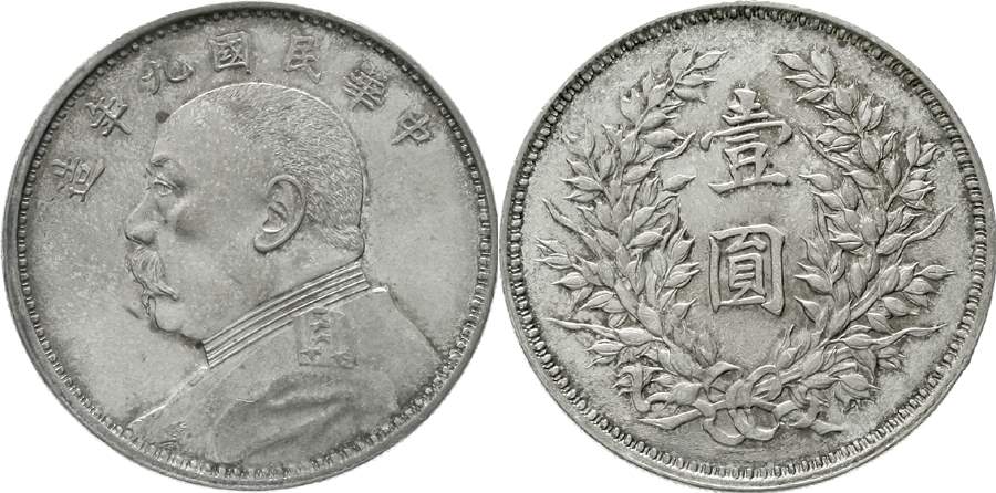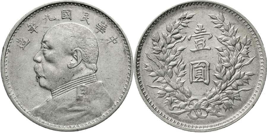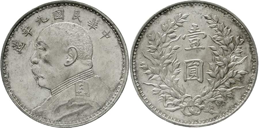 Republik 1912-1949. Dollar (Yuan) Jahr 9 = 1920. Prasident Yuan Shih-kai. Lin Gwo Ming 77 Yeom. 329.6 sehr schon/vorzuglich