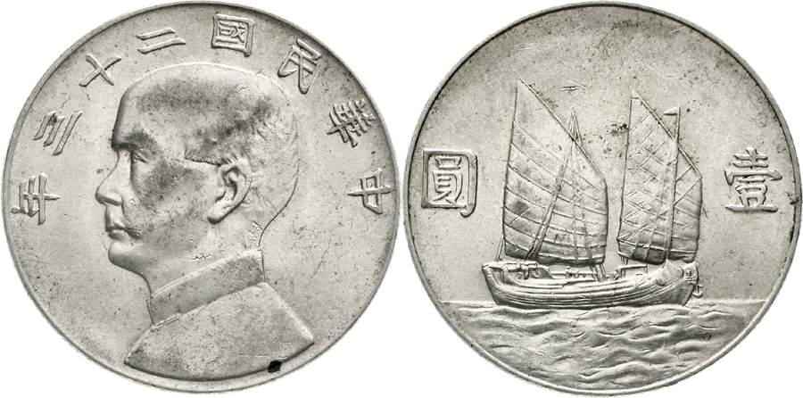 Lot 953.ÜBRIGES AUSLAND. CHINA -Volksrepublik seit 1911. 1 Dollar Jahr 10 = 1921. Dav. 225, Yeo. 329 f. vz,Starting price: 70 EUR