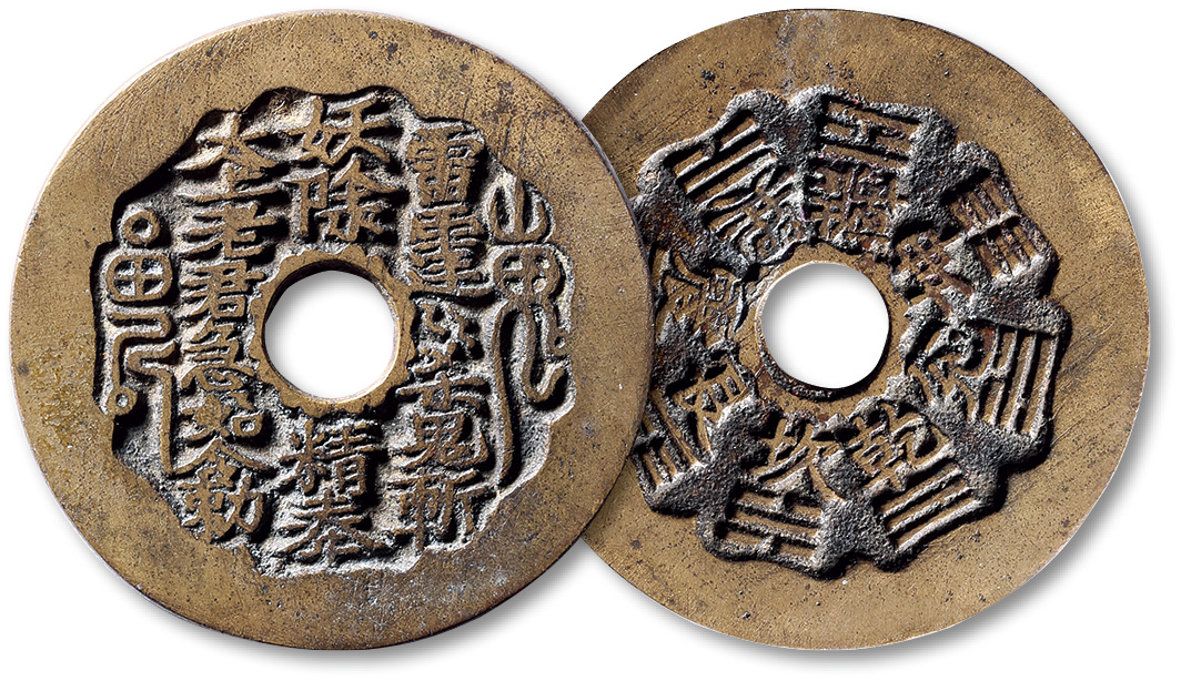 清“山鬼雷公”背“八卦”大型花钱一枚,直径:62.6mm,海外回流,上美品