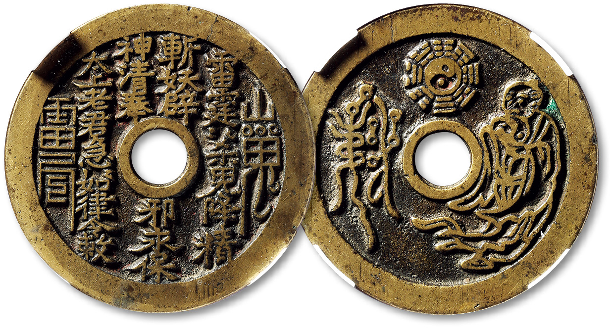清“山鬼雷公”背太上老君苏炉花钱一枚,直径:45.8mm,华夏评级75,极美品